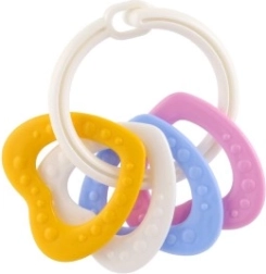 Gredzenu virsmas tekstūras nodrošina papildu stimulāciju bērna smaganām zobu šķilšanās laikā.