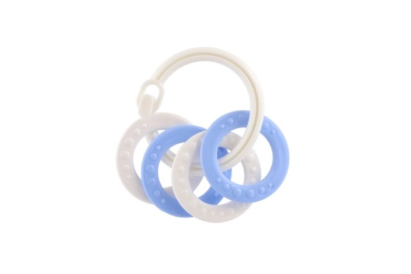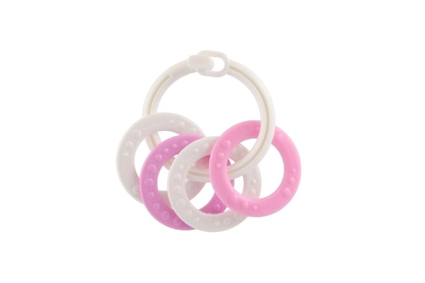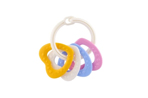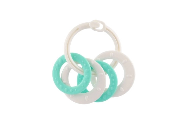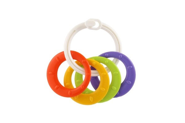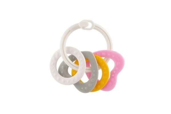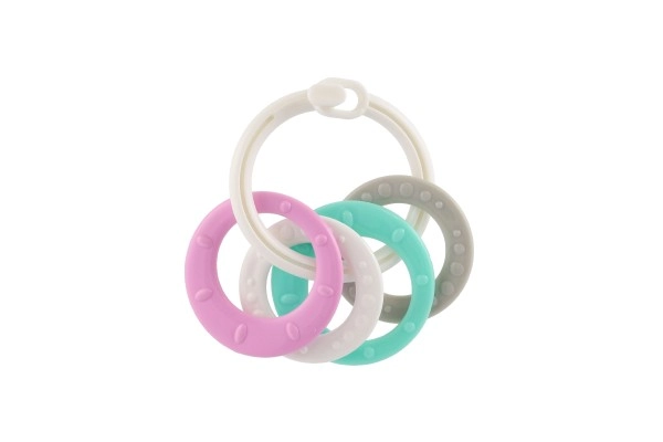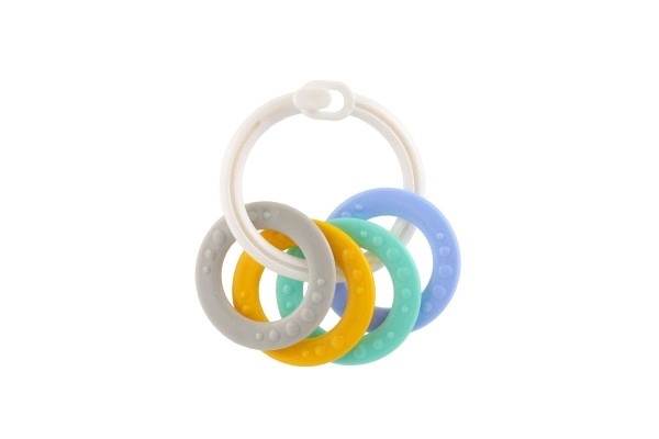 Košļājamo rotaļlietu komplekts ar krāsainiem plastmasas gredzeniem