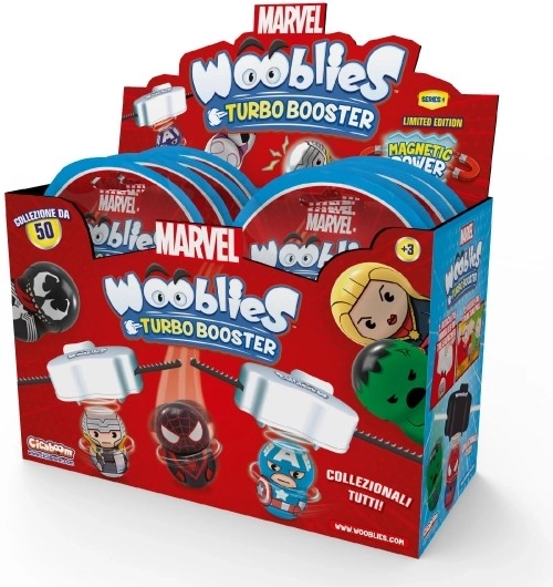 Atklāj jautrību ar Wooblies kolekciju, kas iedvesmota no MARVEL supervaroņiem! Katrs komplekts ietver magnētisku Wooblies figūriņu (pārsteigums), Turbo Booster šāvēju ātrai iegriešanai un palaišanai, kolekcionēšanas kartīti un bukletiņu ar spēlēm un sarakstu. Izbaudi bezgalīgas spēļu iespējas, cīņas ar draugiem un sakrāj visas figūriņas.