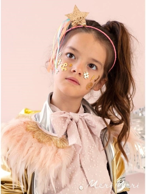 Galvas lente Krītošā Zvaigzne ir elastīga galvas lente ar tekstila pārklājumu un mirdzošu zvaigzni ar krāsainām lentītēm, ko novērtēs gan mazi, gan lieli.