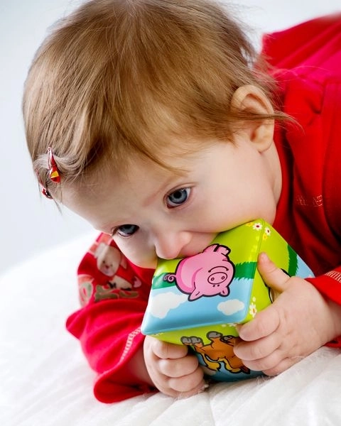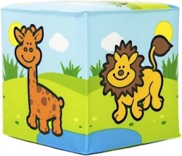 Mīksts putu košļājamais klucītis ar krāsainām dzīvnieku ilustrācijām iepriecinās zīdaiņus no dzimšanas, veicina maņu attīstību un sīko motoriku un ir bez ftalātiem, drošs košļāšanai.