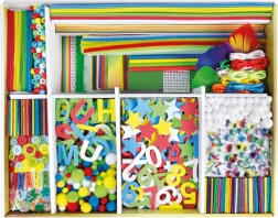 Milzīga materiālu izvēle vienā koferītī ļauj bērniem veidot dekorācijas, figūras un skolas projektus – bez ierobežojumiem, pēc savas fantāzijas.