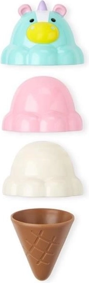 Komplektā ietilpst 5 bumbiņas, īpaša vienradža bumbiņa, 3 korneti un varavīksnes statīvs – viss, kas nepieciešams saldējuma pasniegšanai.
