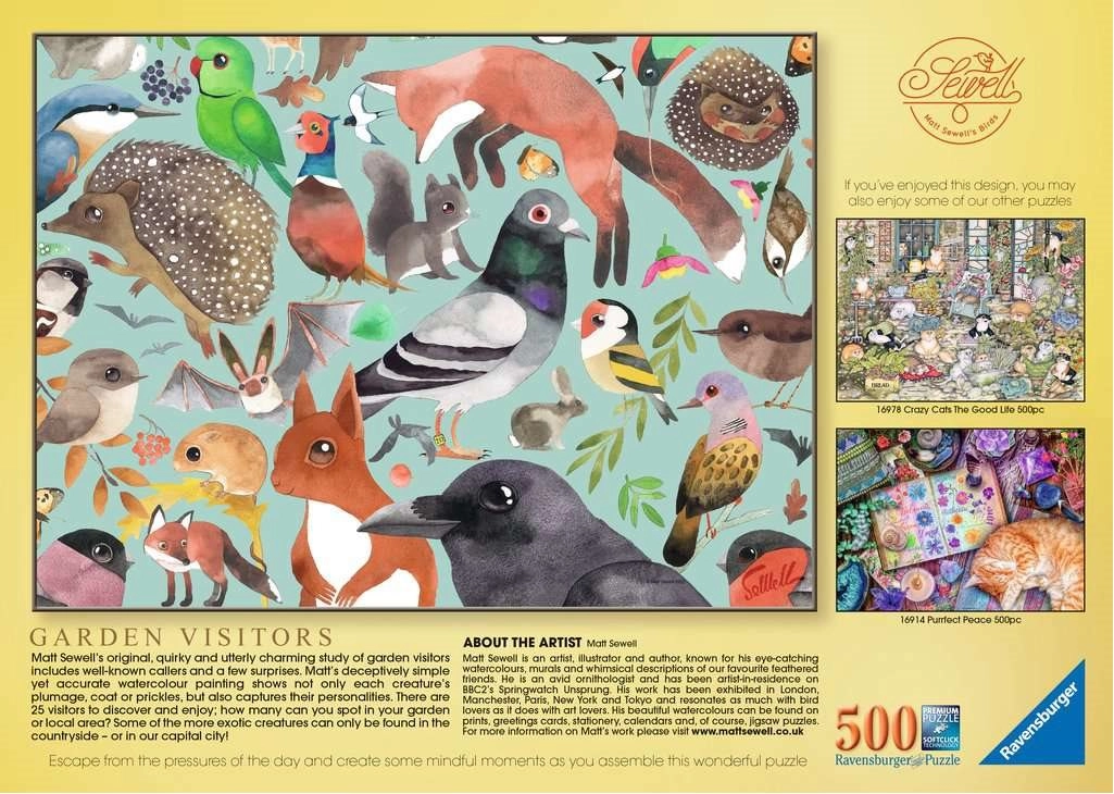 500 gabalu mīkla ar nosaukumu Dārzu iemītnieki piedāvā unikālus un smalkus rakstus, kurus ir viegli salikt un kas veido skaistu attēlu. Ideāli prāta treniņam un atpūtai.