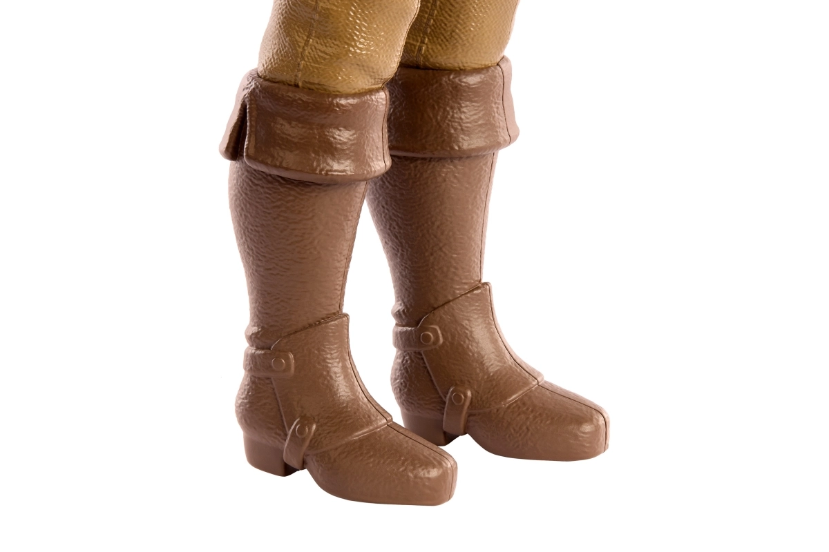 Faktūras augstie zābaki un precīzi veidoti aksesuāri piešķir figūrai kolekcionāru kvalitāti un izturību rotaļām.