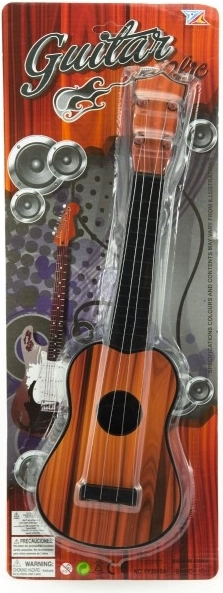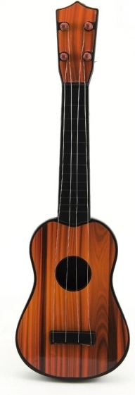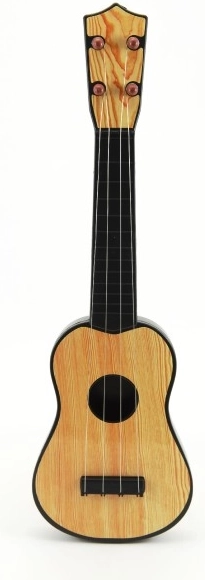 Bērnu plastmasas ģitāra ar garumu 40 cm ir ideāls pirmais mūzikas instruments mazajiem mūziķiem. Tā palīdz attīstīt smalko motoriku, kustību koordināciju un ritma izjūtu. Pieejama divos krāsu variantos ar gaiša vai tumša koka imitāciju. Piemērota no 3 gadu vecuma.