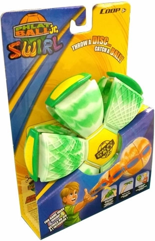 Phlat Ball Junior Swirl ir inovatīva rotaļlieta, kas sniedz divkāršu izklaidi. Tās spēja mainīt formu no diska uz bumbu piešķir pilnīgi jaunu dimensiju tradicionālām āra spēlēm. Ar košu dizainu, kas pieejams četros jaunos rakstos, tā piedāvā neskaitāmus veidus, kā izklaidēties.