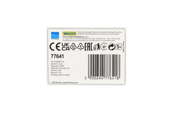 Krāsains smilšu komplekts ar motīvu AUTOMAŠĪNAS no Wader iepriecinās ikvienu mazo būvētāju. Komplektā ir spainītis, sietiņš, lejkanniņa, grābeklītis un lāpstiņa. Izgatavots no izturīgas un veselībai nekaitīgas plastmasas, ideāli piemērots pludmalei un smilšu kastēm. Piemērots no 12 mēnešu vecuma.