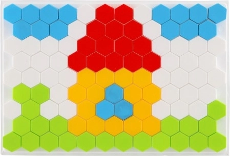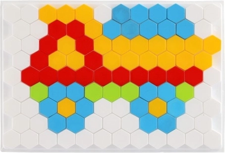 Ieniriet krāsu un formu pasaulē ar šo mozaīkas konstruktoru. Pamatā ir balta pamatne, kas atgādina bišu šūnas, uz kuras var veidot krāsainas plastmasas detaļas. Mozaīka veicina radošumu, telpiskās prasmes un sīkās motorikas attīstību bērniem.
