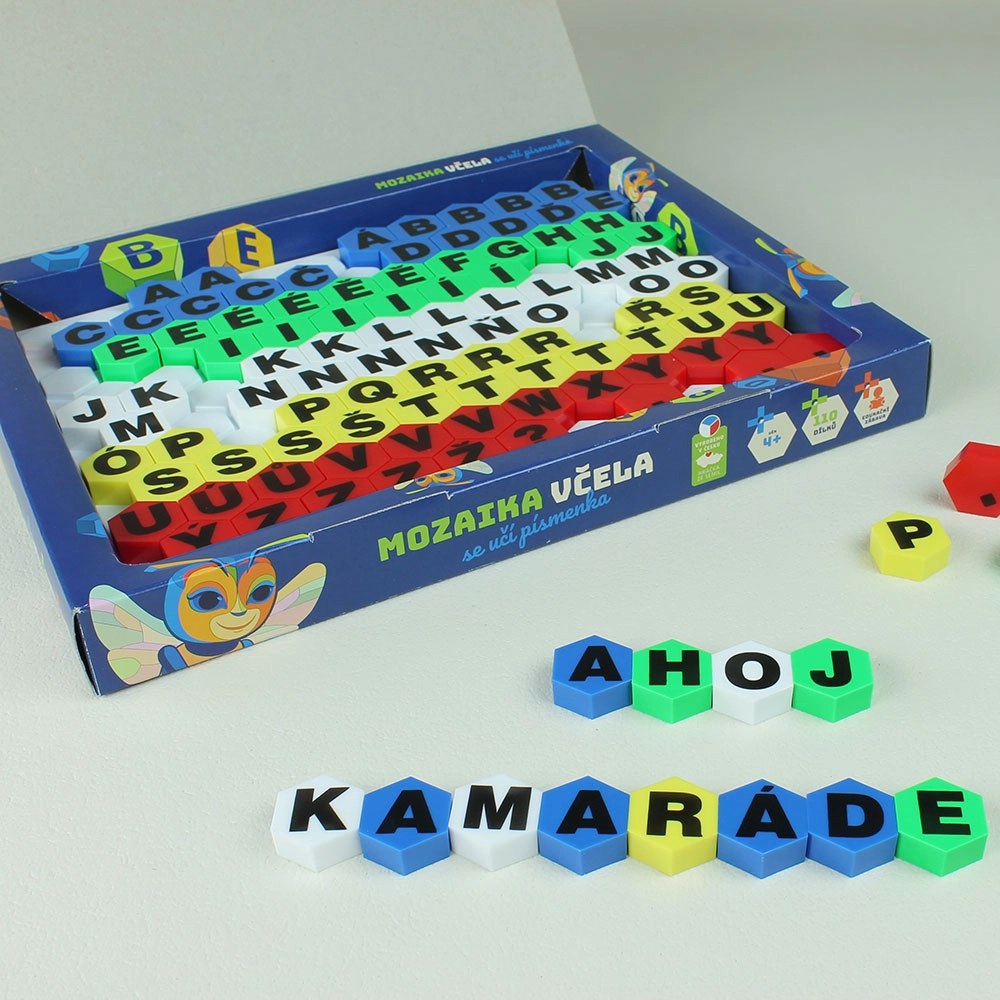 Izklaidējošs un izglītojošs konstruktors bišu šūnu formā palīdz bērniem no 4 gadu vecuma rotaļīgā veidā apgūt alfabētu. Satur burtus piecās košās krāsās, kā arī pieturzīmes pirmo vārdu veidošanai. Attīsta smalko motoriku, krāsu uztveri un loģisko domāšanu. Ideāli piemērots pirmsskolniekiem un arī rotaļīgiem pieaugušajiem, kuri vēlas bērnus iepazīstināt ar burtu pasauli.