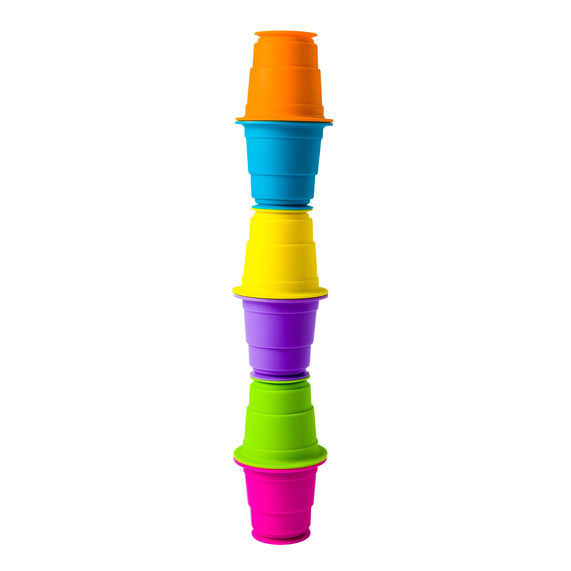 Pateicoties integrētajiem piesūcekņiem, trauciņi viegli pieķeras pie gludām virsmām – uz galda, vannā vai pie ledusskapja. Ideāli radošai būvēšanai un rotaļām ar ūdeni.