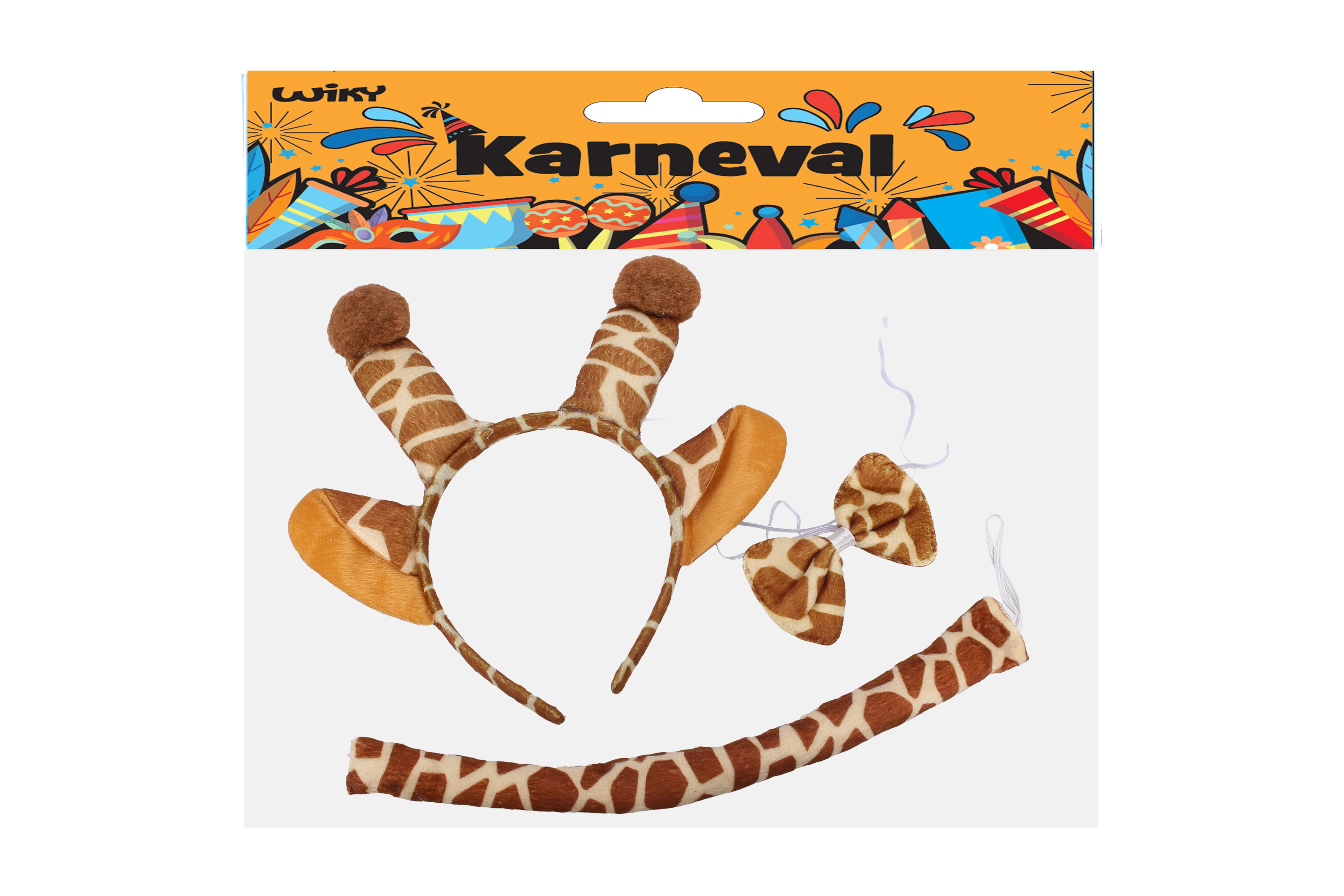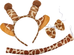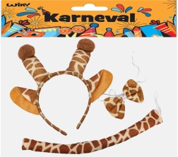 Meklējat ātru un efektīgu karnevāla pārvērtību? Ar šo žirafes tēmas komplektu iegūsiet visu nepieciešamo vienā. Stīpiņa ar austiņām, tauriņš ap kaklu un aste veidos rotaļīgu izskatu, kas piesaistīs uzmanību jau no pirmā skatiena. Aksesuārs ir lieliski piemērots gan bērniem, gan pieaugušajiem un sader ar kleitām, T–krekliem un kombinezonu.