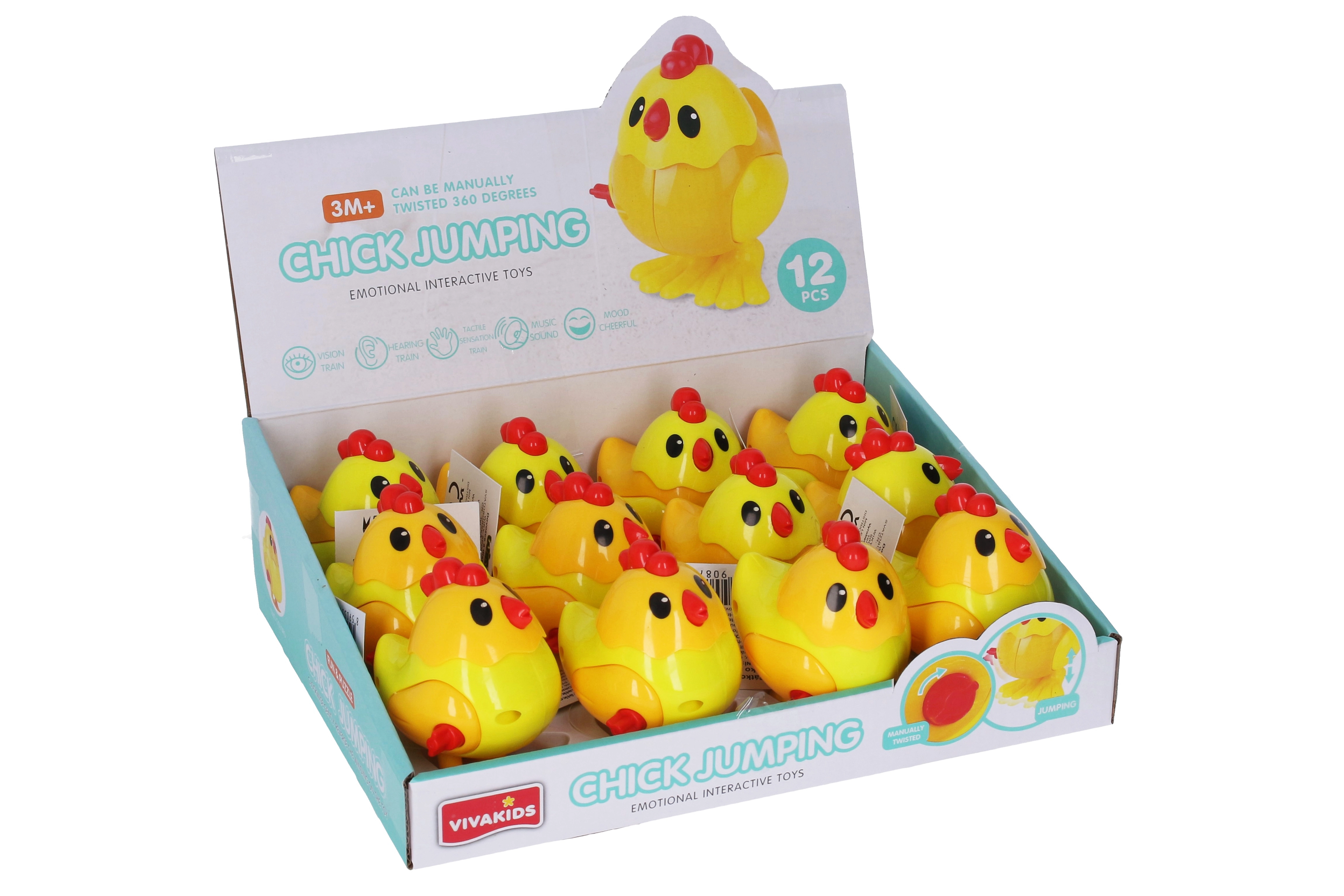 Atnesiet mājās prieku un smieklus ar šo jautro cālīti! Šī rotaļlieta, kas ir ideāli piemērota bērniem no 3 mēnešu vecuma, piedāvā bezgalīgas izklaides stundas. Uztiniet to, atlaidiet un vērojiet, kā tas jautri lēkā un izklaidē visus apkārt.