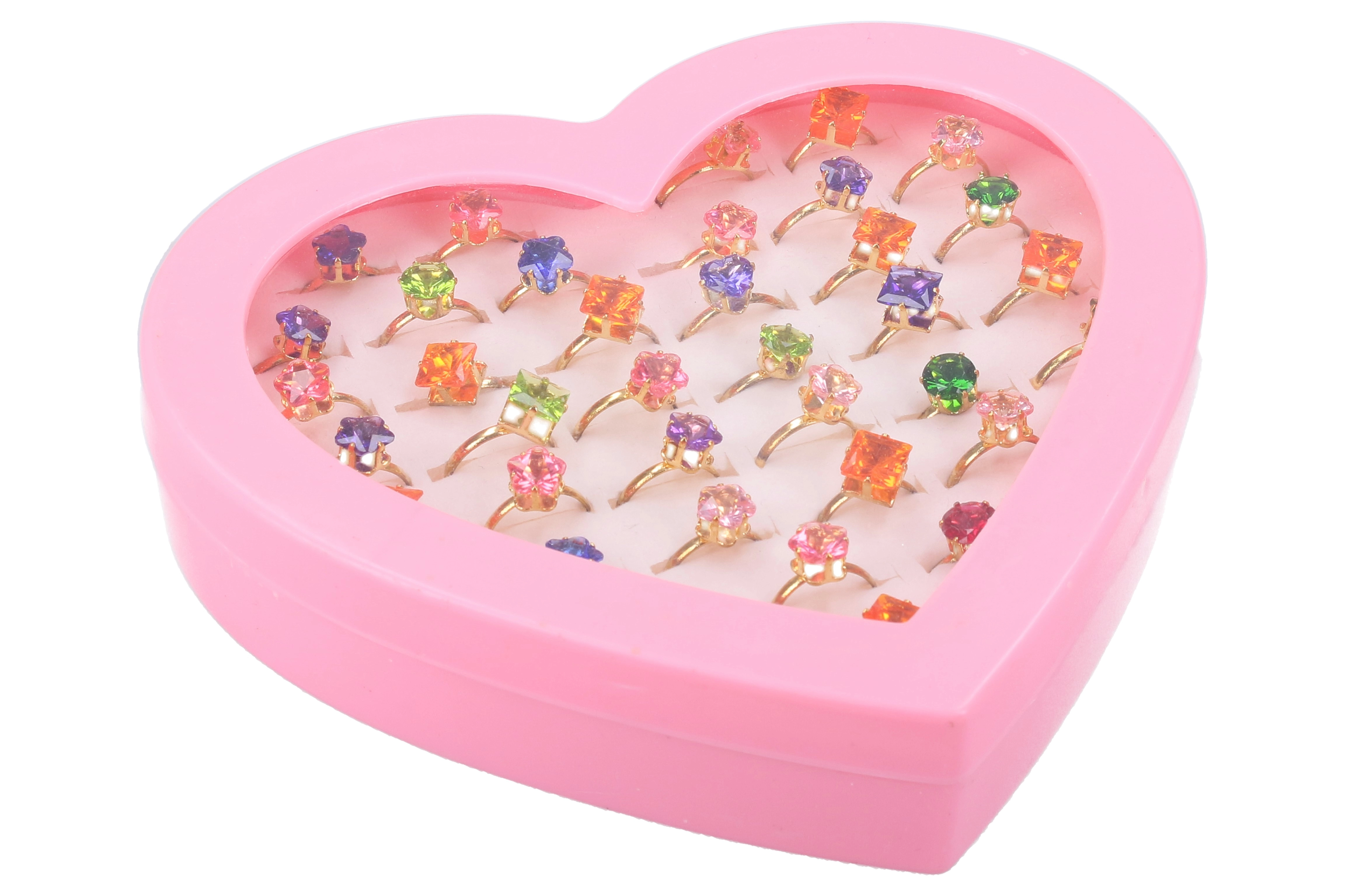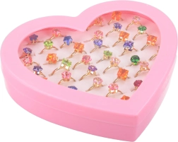 Ar šo lielisko komplektu, kurā ir 36 gredzeni ar krāsainiem akmentiņiem, ikviens bērns var izvēlēties savu iecienītāko. Katrs gredzens ir regulējams, kas ļauj viegli pielāgot pirksta izmēram. Tie ir lieliska dāvana visām mazajām princesēm, kuras vēlas būt stilīgas katru dienu.