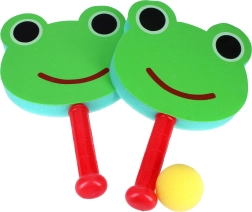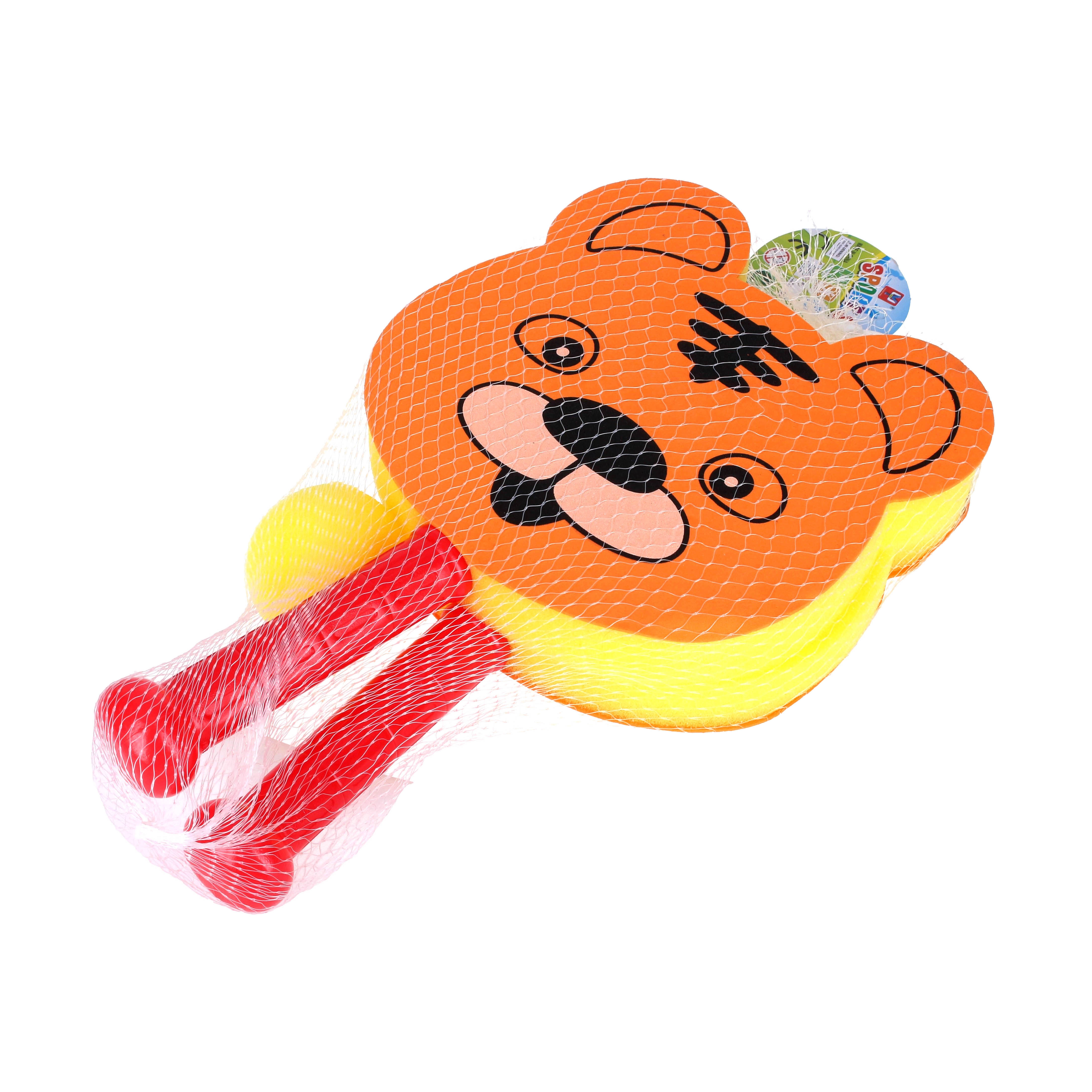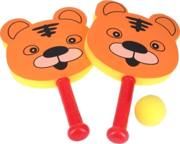 Šis mīlīgais mīkstā tenisa komplekts ir izstrādāts drošai un aizraujošai spēlei bērniem no 3 gadu vecuma. Mīkstās dzīvnieciņu formas raketes ir vieglas, ērti turamas un pateicoties izturīgajam plastmasas rokturim ar tām ir viegli manipulēt. Spēle attīsta koordināciju, reakciju un kustību prasmes.