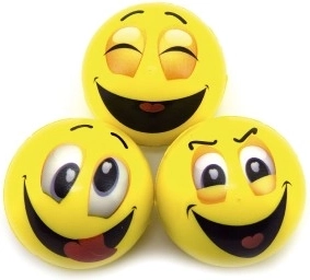 Katra bumbiņa ir rotāta ar citu smaidiņu – no smaida līdz pārsteigumam. Bērni var izvēlēties atbilstoši noskaņojumam un izdomāt jautras spēles.