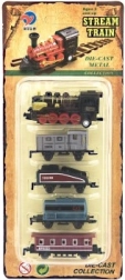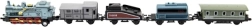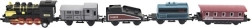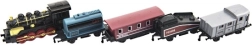 Vilcieniņu komplekts ar lokomotīvi un četriem vagoniem iepriecinās ikvienu dzelzceļa cienītāju. Pateicoties metāla un plastmasas izpildījumam, modeļi izskatās reālistiski un vienlaikus iztur bērnu aizrautīgo spēlēšanos. Katra detaļa ir kompakta, 8 cm garumā, tāpēc ērti turama rokā un piemērota mājas trasēm.