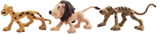 Komplekts ar 6 dzīvniekiem praktiskā iepakojumā – ideāli ceļošanai, bērnudārzam un mājām. Neiztrūkst lauva, gepards un hiēna.