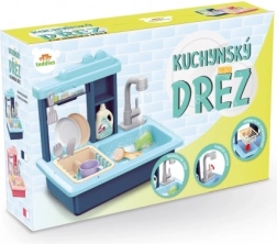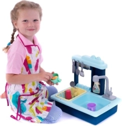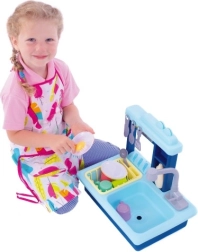Bērnu trauku mazgāšanas izlietne ir aprīkota ar darbīgu jaucējkrānu un ūdens tvertni, kas nodrošina īstu ūdens plūsmu, padarot rotaļas vēl jautrākas. Komplektā ir arī noņemams notecinātājs un praktiski virtuves piederumi.