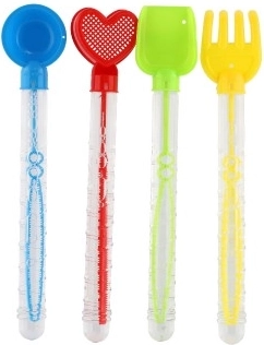 Četras atšķirīgas rokturu formas: aplis, sirds, kvadrāts un dakša, krāsās zila, sarkana, zaļa un dzeltena.