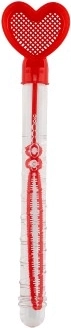 Sarkans sirds formas rokturis piešķir katram burbulim mīlestības pieskārienu.