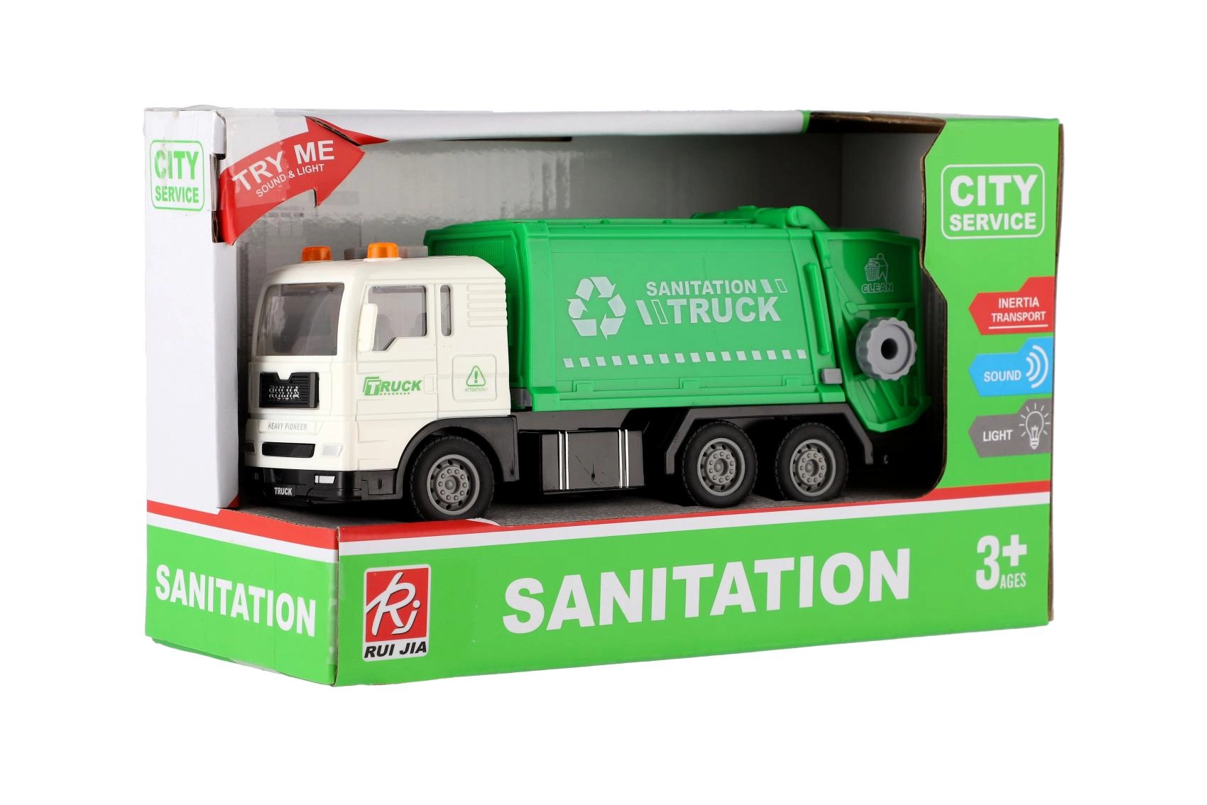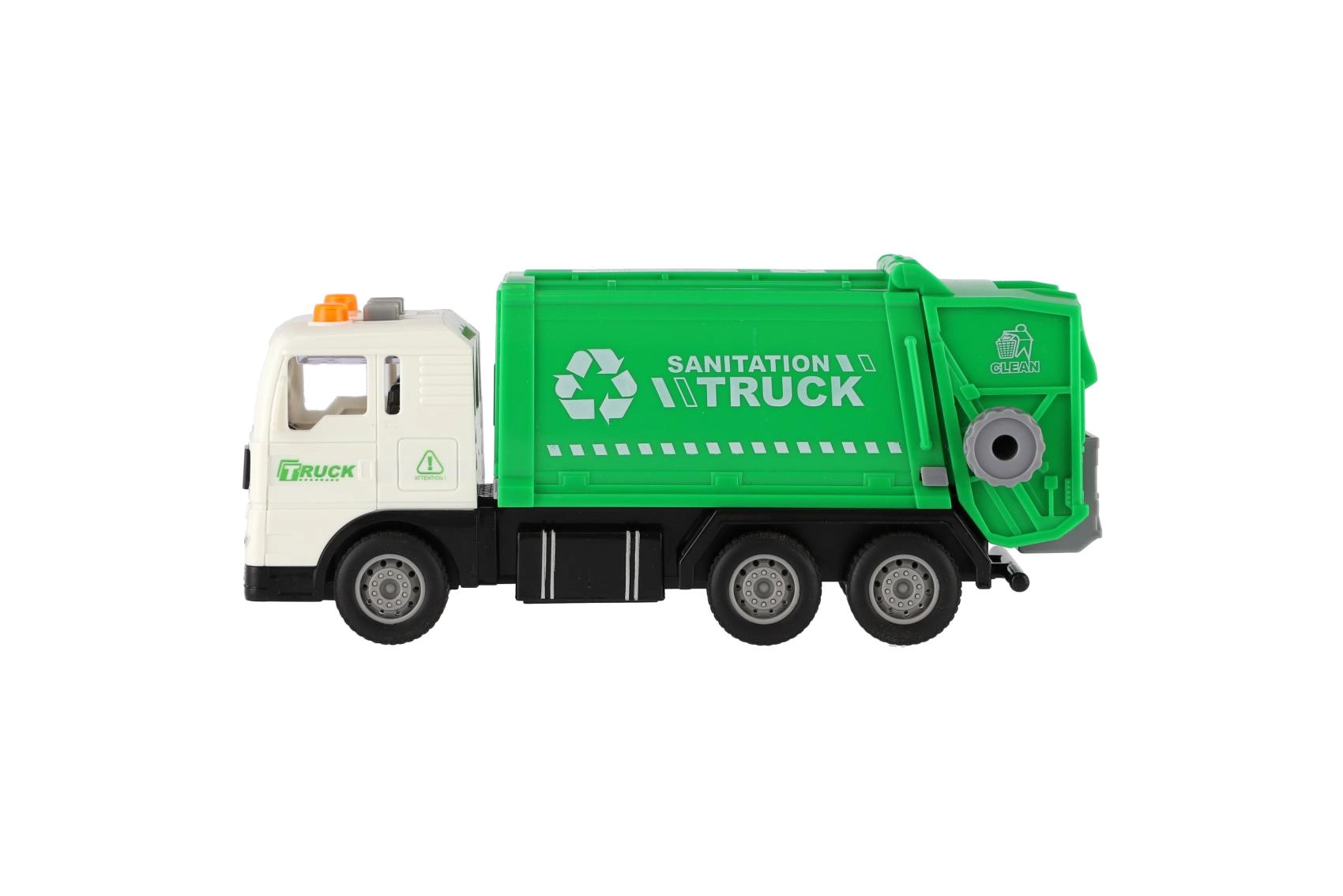 Stilīgs atkritumu savākšanas auto mazajiem šoferiem sniedz reālistisku izklaidi, pateicoties inerces piedziņai, gaismas bākugunīm un skaņas efektiem. Mērogā 1:32 tas piedāvā atveramu un izceļamu konteineru, lai bērni varētu izbaudīt īstu atkritumu savācēju darbu. Komplektā iekļautas AG13 baterijas, tāpēc spēle var sākties uzreiz.