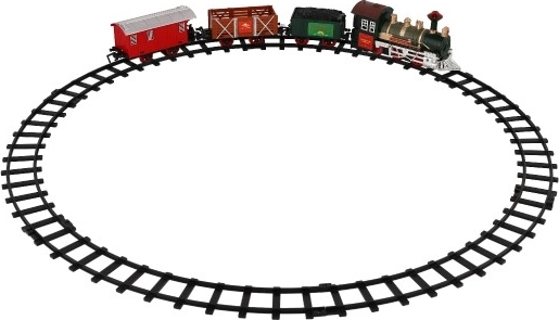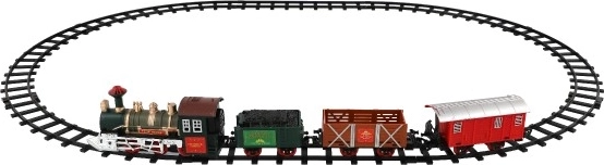 Iepakojumā ir 8 sliežu posmi, kas ļauj izveidot 107 cm apli. Trasi veido 6 līkumotas un 2 taisnas sliedes. Darbībai nepieciešamas 2 x AA baterijas lokomotīvei (nav iekļautas komplektā).