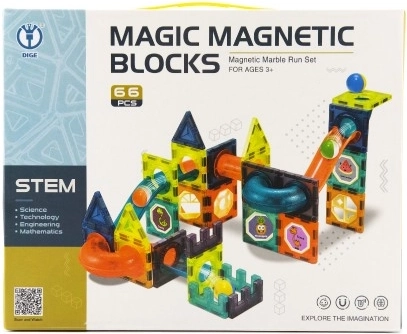 Atklājiet radošo pasauli ar šo magnētisko bumbiņu trasi, kurā ir 66 detaļas un kas attīsta iztēli, loģisko domāšanu un STEM prasmes. Detaļas viegli savienojas ar magnētu palīdzību, tāpēc būvēšana ir ātra un aizraujoša. Uzbūvējiet savu bumbiņu trasi un vērojiet aizraujošu braucienu no starta līdz finišam. Piemērots bērniem no 3 gadu vecuma.
