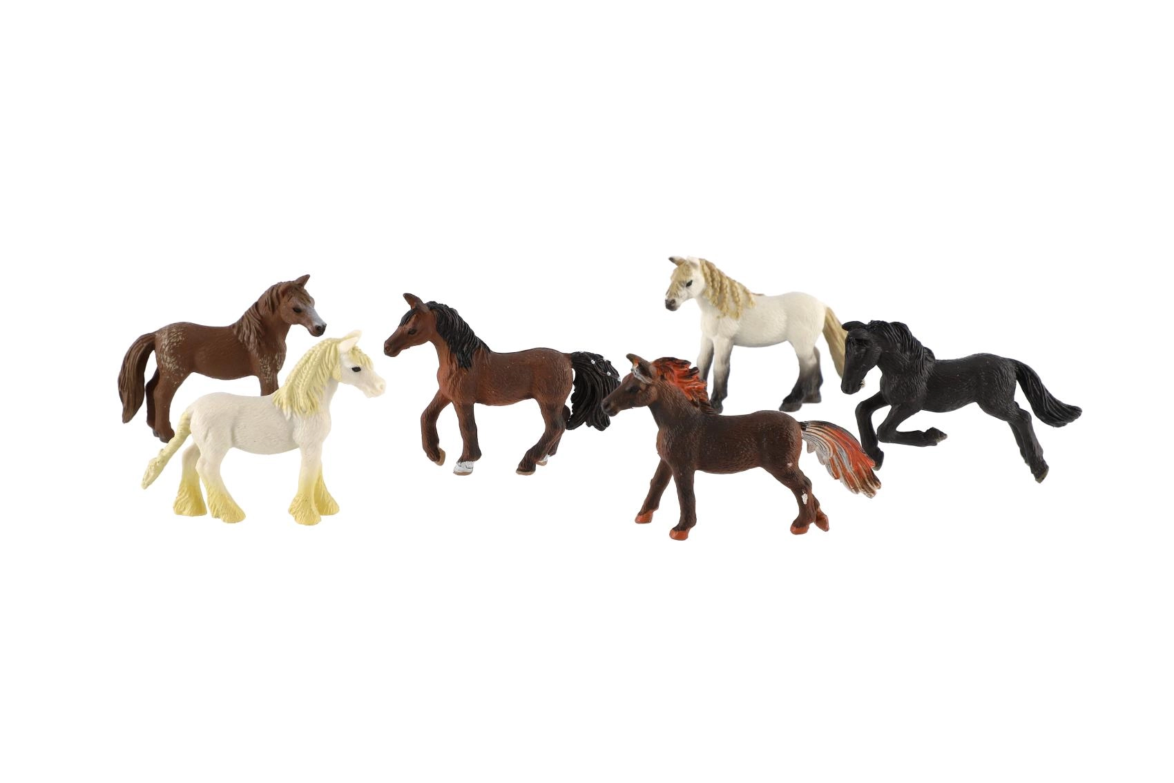 Komplektā ir sešas dažādas figūriņas ar detalizēti veidotu krēpi, asti un stāju – lieliski piemērotas kolekcionēšanai un spēlei fermā.