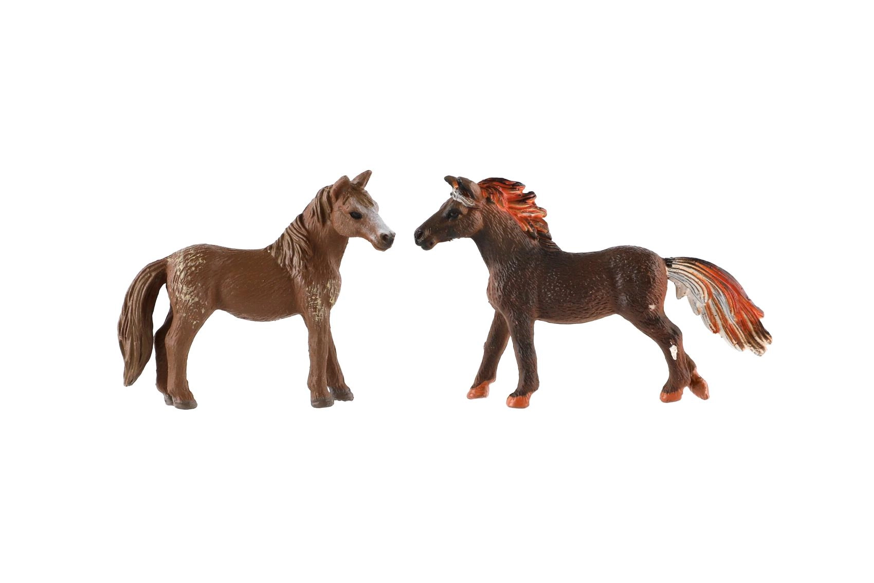 Zirgiņi ir izgatavoti no kvalitatīvas plastmasas ar skaistām krēpes, astes un stājas detaļām. Pateicoties kompaktajam 6–7 cm izmēram, tie viegli ietilpst bērna plaukstā un ceļojumu somā – ideāli lietošanai mājās un ceļā.
