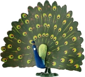 Šī reālistiskā plastmasas figūriņa attēlo majestātisku cekulpāvu ar izceltām krāsām un raksturīgo cekulu uz galvas. Pateicoties niansētām detaļām, novērtēsiet tipiskās “pāva acis” uz segspalvām un zilā ķermeņa kontrastu ar zaļajām spalvām.