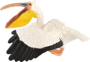 Šī plastmasas figūriņa uzticami attēlo Ziemeļamerikas pelikānu ar raksturīgo garo knābi un rīkles somu. Reālistiskas detaļas, piemēram, kontrastainie melnie spārnu gali un dzelteni oranžais knābis, iepriecinās gan mazos pētniekus, gan kolekcionārus. Figūriņu var izmantot dabas, putnu un ekosistēmu mācībām, kā arī kā dekoru bērnu istabā.