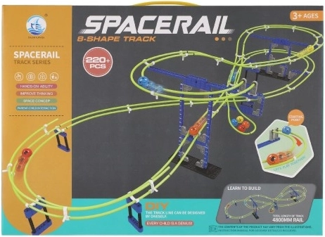 Bumbiņu trase Spacerail ir lieliska izvēle mazajiem inženieriem. Stabilas plastmasas pamatnes un balsti stingri notur visu konstrukciju, savukārt elastīgie elementi ļauj veidot daudzveidīgas cilpu, pagriezienu un nobraucienu kombinācijas. Bērni var būvēt pēc instrukcijas vai pilnībā saskaņā ar savu fantāziju.