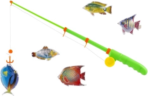 - 1× makšķere ar magnētu, 5× 3D krāsaina zivtiņa