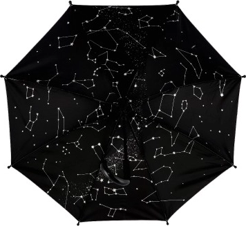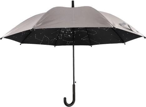 Lietussarga iekšpuse ir rotāta ar zvaigžņotās debess dekoru, kas piešķir eleganci un neatkārtojamu izskatu.