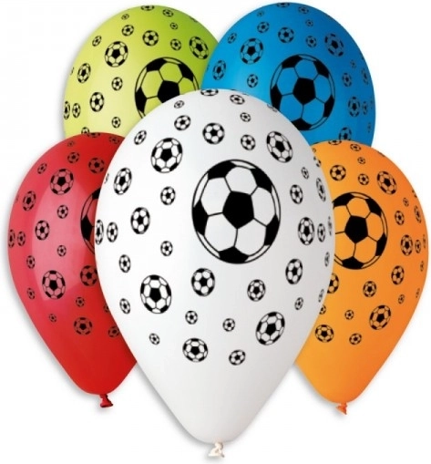 Komplekts ar 5 gab. uzpūšamiem baloniem ar futbola motīvu, diametrs 30 cm (12"), parūpēsies par stilīgu jebkuru svinību dekoru. Baloni futbola krāsās iepriecinās mazos fanus un ir lieliski piemēroti bērnu ballītēm. Piemēroti no 3 gadu vecuma.