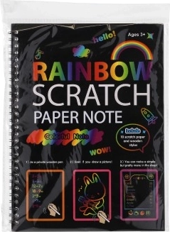 Šis skrāpējamais piezīmju blociņš ar dzegužrainu pamatni piedāvā vienkāršu, bet aizraujošu veidu, kā radīt oriģinālus attēlus. Uz melnās virsmas pietiek viegli skrāpēt, un uzreiz parādās košas, dzegužrainas krāsas. Lieliski piemērots mazajiem māksliniekiem un arī kā relaksējoša nodarbe vecākiem bērniem.