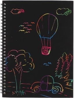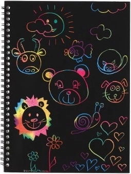 Pietiek viegli noskrāpēt, un zem melnās virsmas parādās spilgtas krāsas. Ideāla radoša izklaide bez krāsām un līmēm.