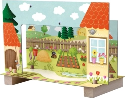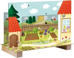 Izgatavots no izturīga koka un kartona, atbilst ES rotaļlietu drošības prasībām. Piemērots bērniem no 3 gadiem.