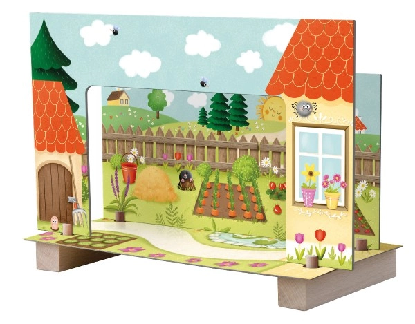 Katrai figūriņai ir ielīmēts magnēts, kas piestiprinās pie magnēta vadotnē. Bērni var vienmērīgi virzīt tēlus pa skatuvi un izspēlēt savas pasakas.