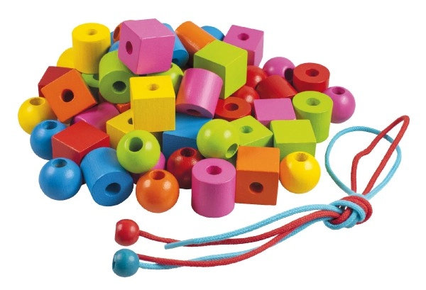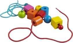 Izklaidējošs lielu koka krellīšu komplekts ar auklu un paraugiem pirmajai vēršanai. Veicina smalko motoriku, acu–roku koordināciju un krāsu un formu atpazīšanu. Drošs izpildījums, krellītes ar 20 mm diametru ir viegli satveramas pat pašiem mazākajiem.