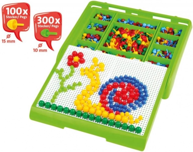 Pārnēsājamais koferītis ar mozaīku no Lena piedāvā neskaitāmas iespējas aizraujošai un izglītojošai spēlei. Komplektā esošais dēlis ļauj radoši ievietot dībeļus mozaīkas rakstos, kas veicina fantāzijas, koncentrēšanās un smalkās motorikas attīstību. Komplektā ietilpst: