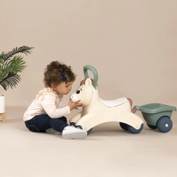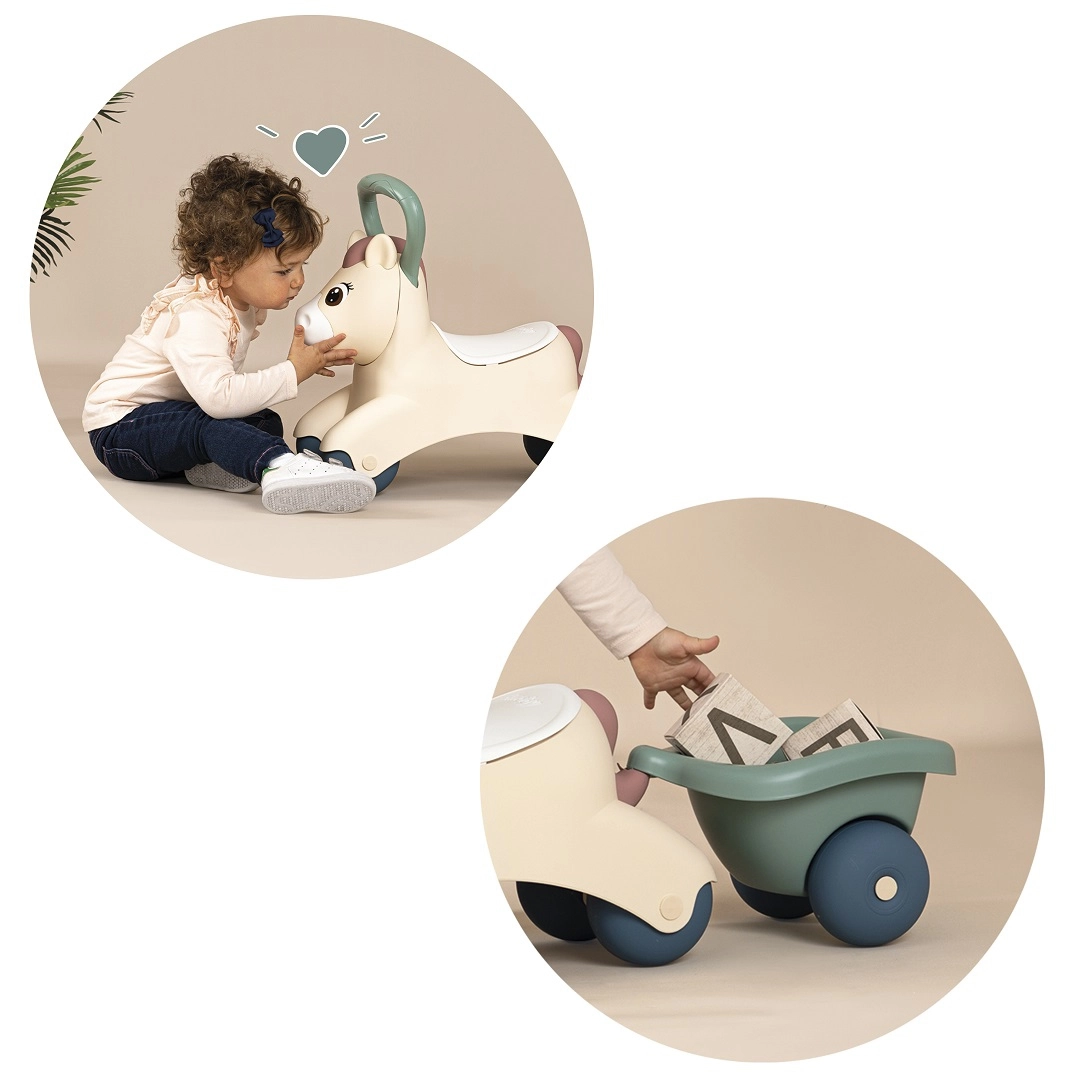 Smoby Little Pony stumjamais braucamrīks ar piekabi ir ideāls mazajiem bērniem, kuri tikai sāk mācīties staigāt un attīstīt līdzsvaru. Pateicoties ērtajam sēdeklim un noņemamai piekabei, bērni var pārvadāt savas mīļākās rotaļlietas un sīklietas.