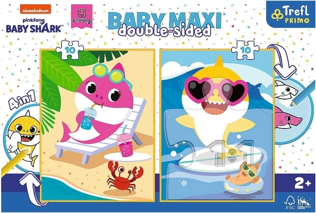 Divpusējās Baby Shark puzles ir lieliska izklaide mazajiem bērniem no 2 gadu vecuma. Katra puzles puse piedāvā atšķirīgu ainu, nodrošinot līdz pat 4 dažādām aktivitātēm vienā produktā. Vienā pusē atradīsiet jautras haizivis pludmalē, bet otrā – zemūdens piedzīvojumus, kas attīsta iztēli.