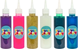 - 6 gela šķidrumi (150 ml) krāsās: rozā, balta, violeta, tirkīza, zila un mirdzoša
