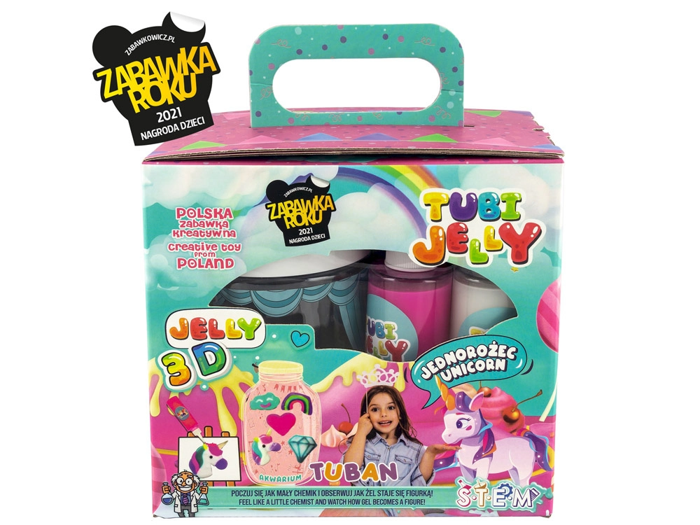 Tubi Jelly komplekts ir ideāls, lai izveidotu mazu, krāsainu akvāriju, kas pilns ar telpiskiem želejas figūriņām. Ar sešām dažādām krāsām un vienkāršu instrukciju pietiek tikai nedaudz radošuma, un izklaide var sākties!