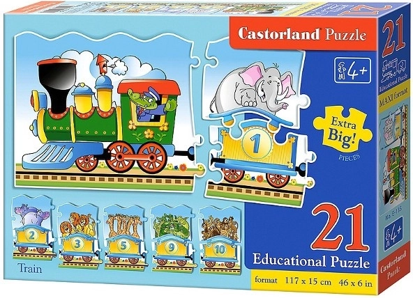 Castorland pužļu likšana nav tikai spēle, bet arī lielisks rīks bērnu prasmju attīstīšanai. Šī liela izmēra puzle satur 13 lielus gabalus, kas kopā veido iespaidīgu attēlu ar vilciena un dzīvnieku motīvu. Pateicoties izmēriem 117 x 150 cm, tā ir ideāli piemērota arī grupu spēlēm ne tikai mājās, bet arī skolās un bērnudārzos.