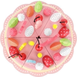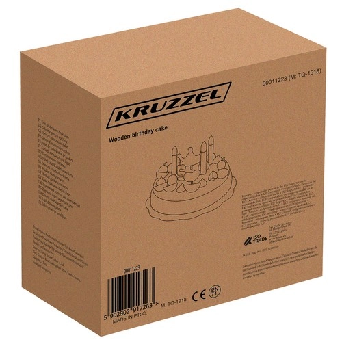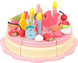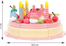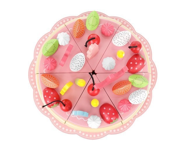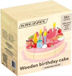 Koka torte ļauj dekorēt pēc savas ieceres, izmantojot dekoratīvus elementus. Tā trenē sīko motoriku un attīsta radošumu. Visas detaļas ir droši savienotas ar magnētiem.