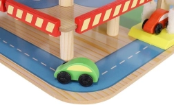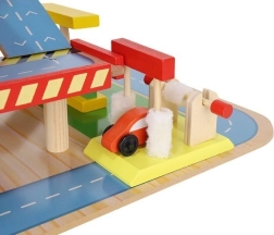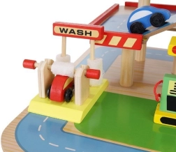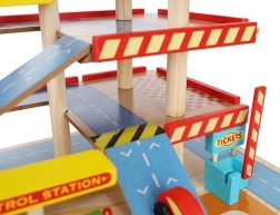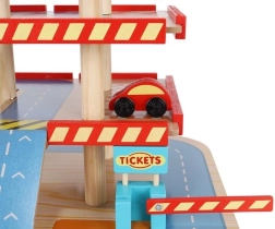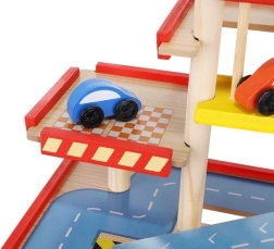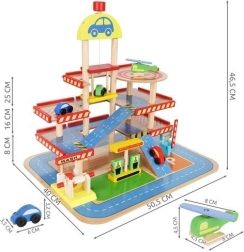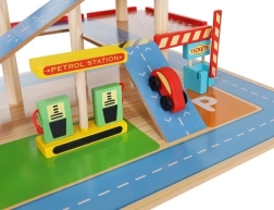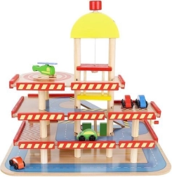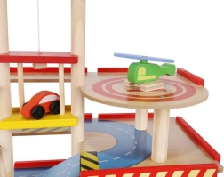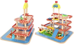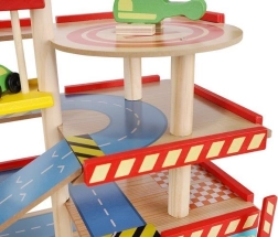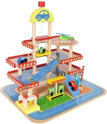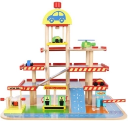 Krāsaina koka daudzlīmeņu autostāvvieta bērniem sniegs stundām ilgu izklaidi un attīstīs gan sīko motoriku, gan iztēli. Komplektā ir mazgātava, degvielas uzpildes stacija, kase, lifts, heliports un transportlīdzekļi. Stabilā konstrukcija no droša koka un reālistiski piederumi veicina radošu spēli un satiksmes situāciju apguvi.