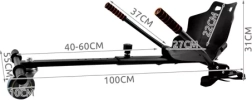 Izturīgs rāmis no metāla un noturīgiem materiāliem ir izstrādāts drošai un ilgai kalpošanai. Plūdena garuma regulēšana 40–60 cm ļauj precīzi pielāgoties braucēja augumam, bet priekšējais grozāmais ritenītis nodrošina vienmērīgu manevrējamību. Montāža ir ātra un bez instrumentiem – ar izturīgām skavām un regulējamām līplentas siksnām uzliku viegli piestiprināsiet dažādiem hoverboard tipiem.